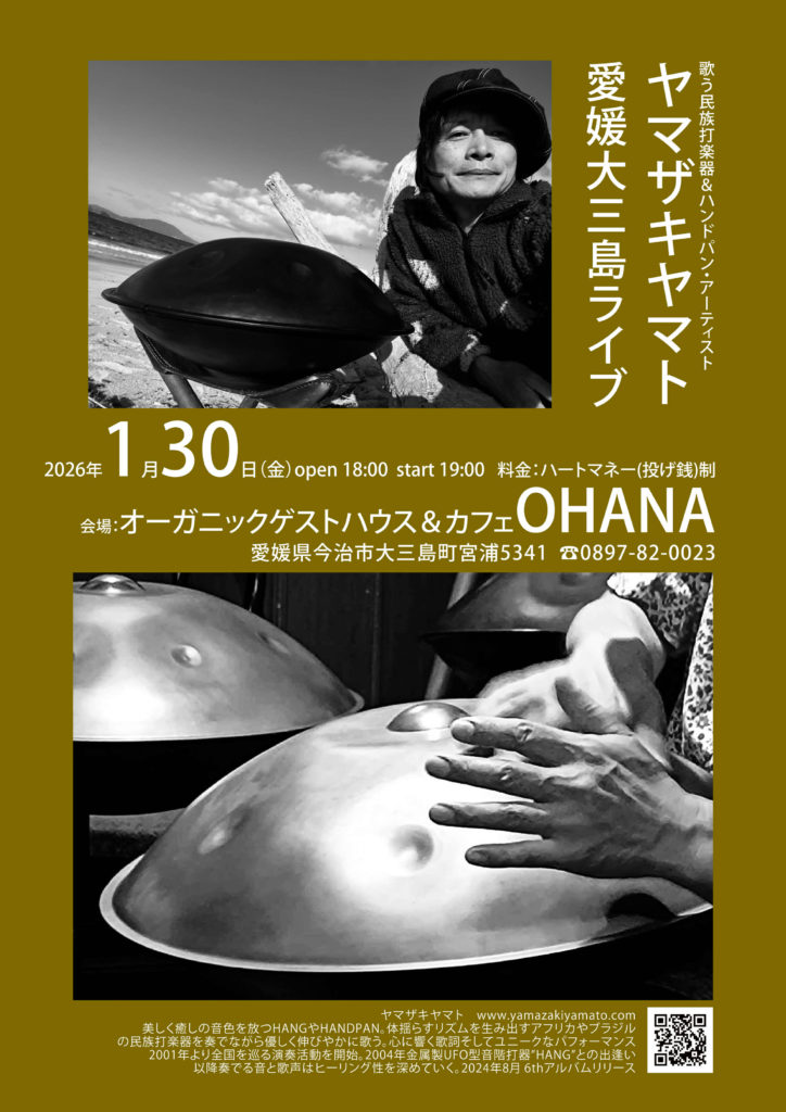 歌う民族打楽器&ハンドパンアーティスト「ヤマザキヤマト」LIVE @1/30(金) 大三島OHANA
